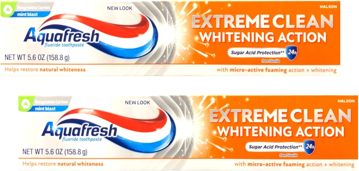 Aquafresh Extreme Clean Whitening Action Toothpaste, Mint Blast, 5.6 oz Twin Pack for Intense Freshness & Stain Removal
