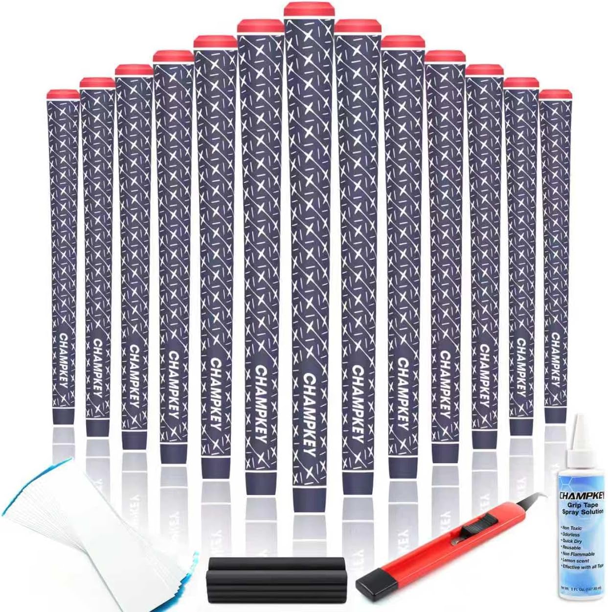 CHAMPKEY X Rubber Golf Grips 13 Pack with Tapes & Kit | All-Weather Performance
