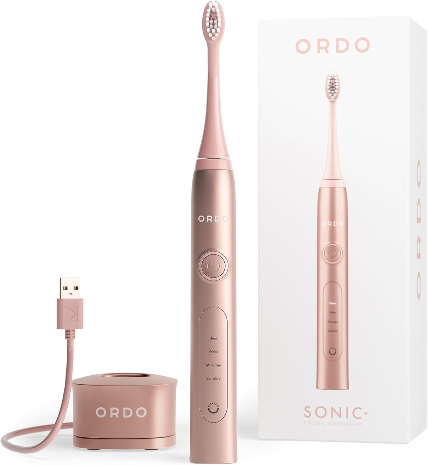 ORDO Sonic+ Electric Toothbrush for Adults: Advanced Smart Tech, 4 Modes, 4+ Week Battery, Rose Gold
