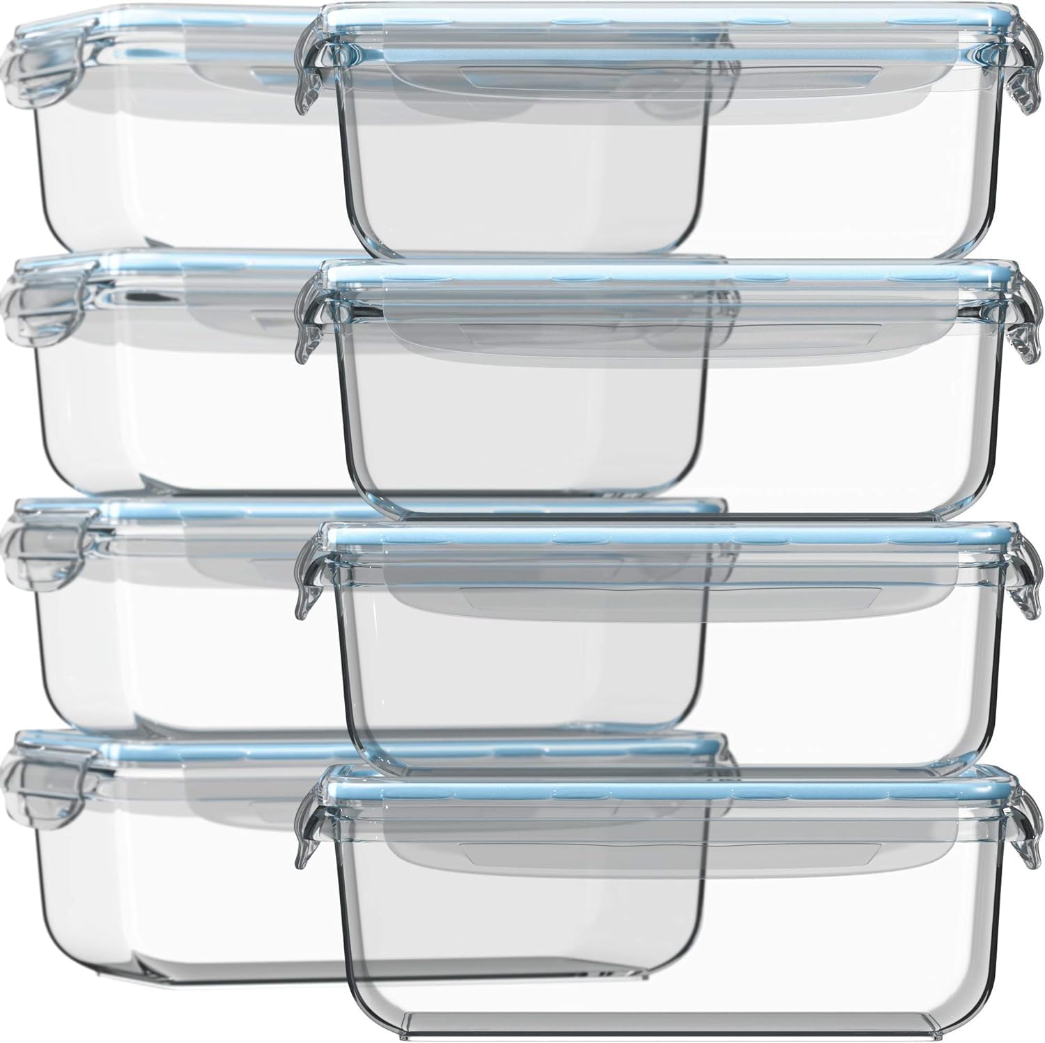 Razab 16 Pc Glass Meal Prep Containers (8 Containers + Lids) – 30 Oz Airtight, Leakproof, Freezer to Oven Safe